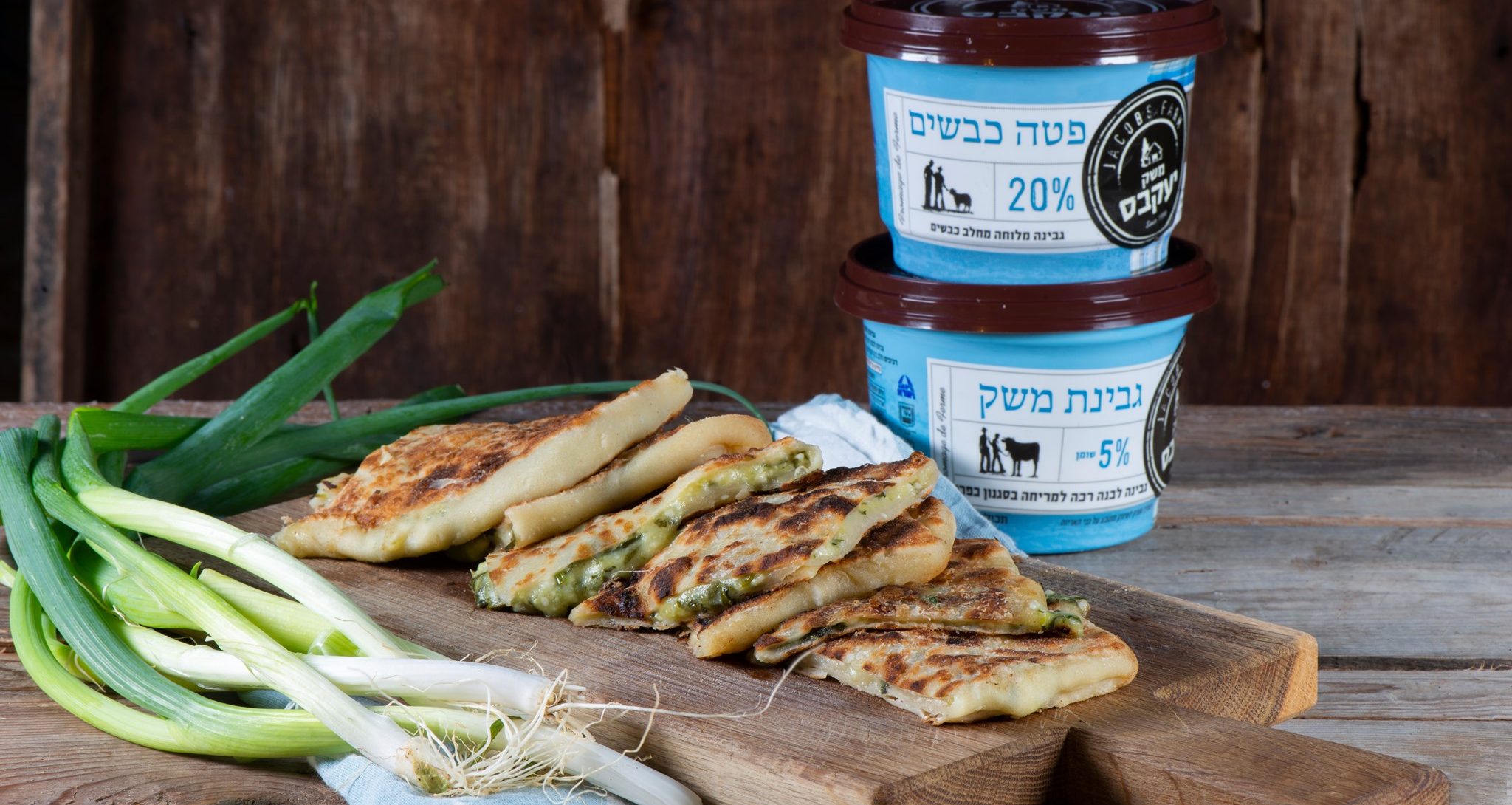 מניחים את כדורי הגבינה והתרד במרכז יריעות הבצק, משטחים אותם ומקפלים את הגוזלמה כך שהמילוי יהיה מכוסה מכל צידיו.