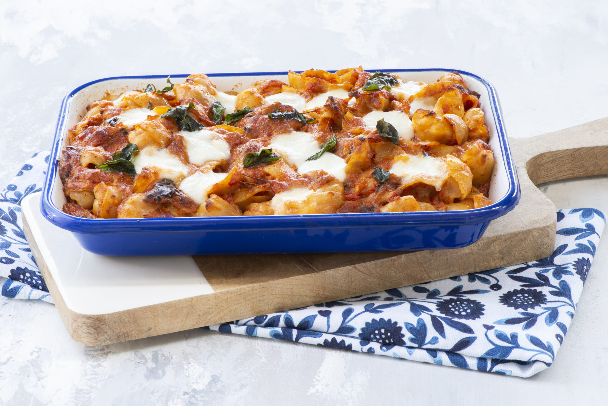 מעבירים את הפסטה לתבנית אפייה ואופים כ20 דק' עד שהגבינה משחימה.