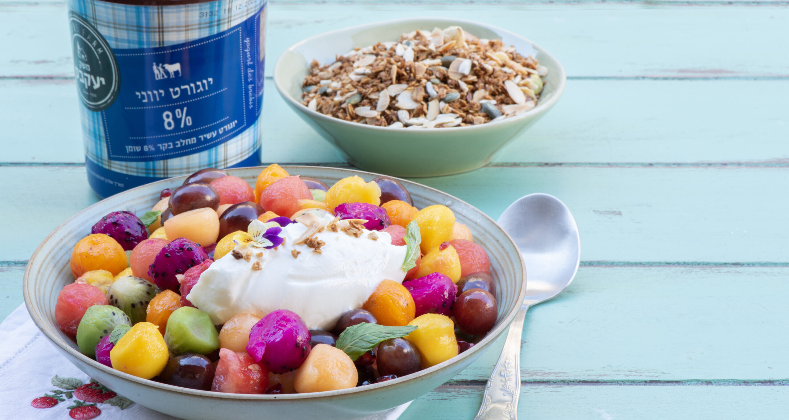 יוגורט יווני כתוספת לסלט פירות הוא שידוך מושלם.