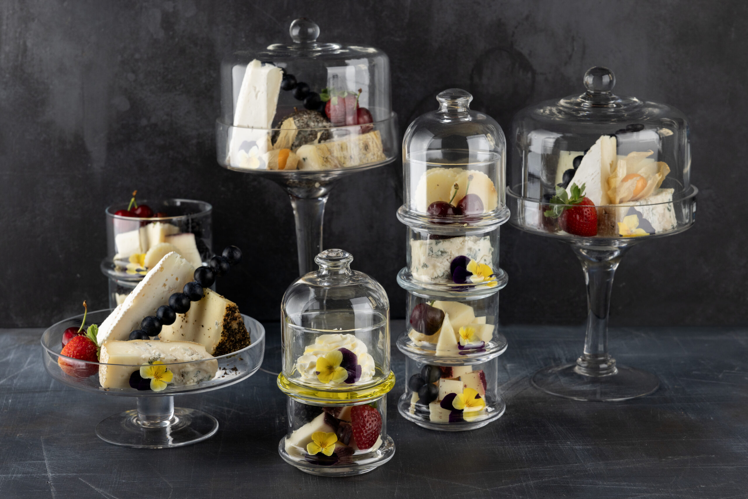 פעמוני זכוכית עם גבינות, פירות ועוד גודיס