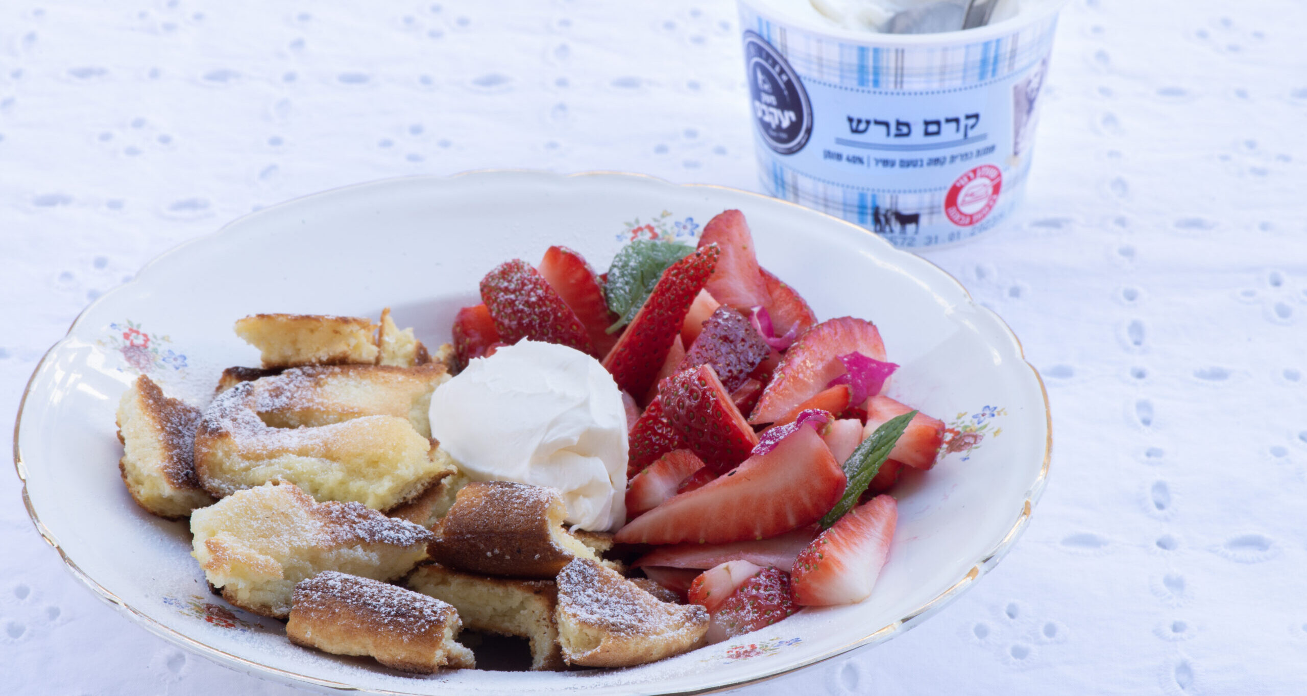 מקפלים את החלבונים לתוך מסת החלמונים. מחממים מחבת שמתאימה לתנור עם מעט חמאה. שופכים חצי מהמסה ומטגנים על חום נמוך עד קבלת צבע חום בהיר.