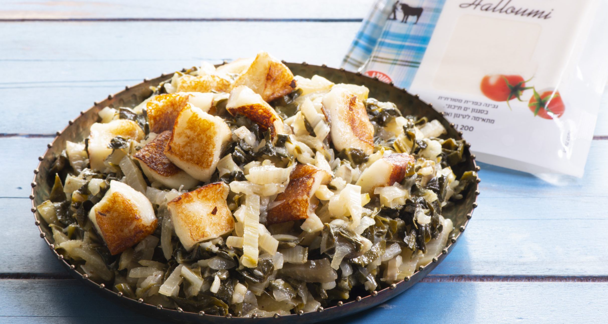 חותכים את גבינת החלומי לקוביות ומטגנים במחבת חמה (אין צורך בשמן).