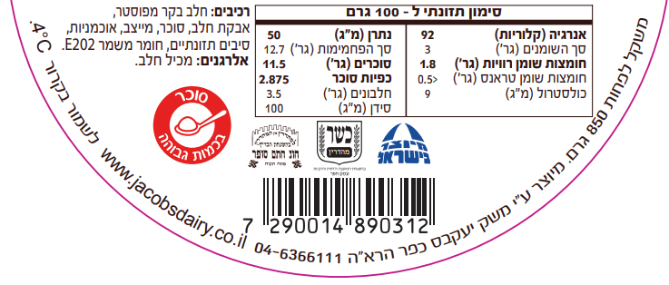 יוגורט מחלב בקר מלא בתוספת אוכמניות.