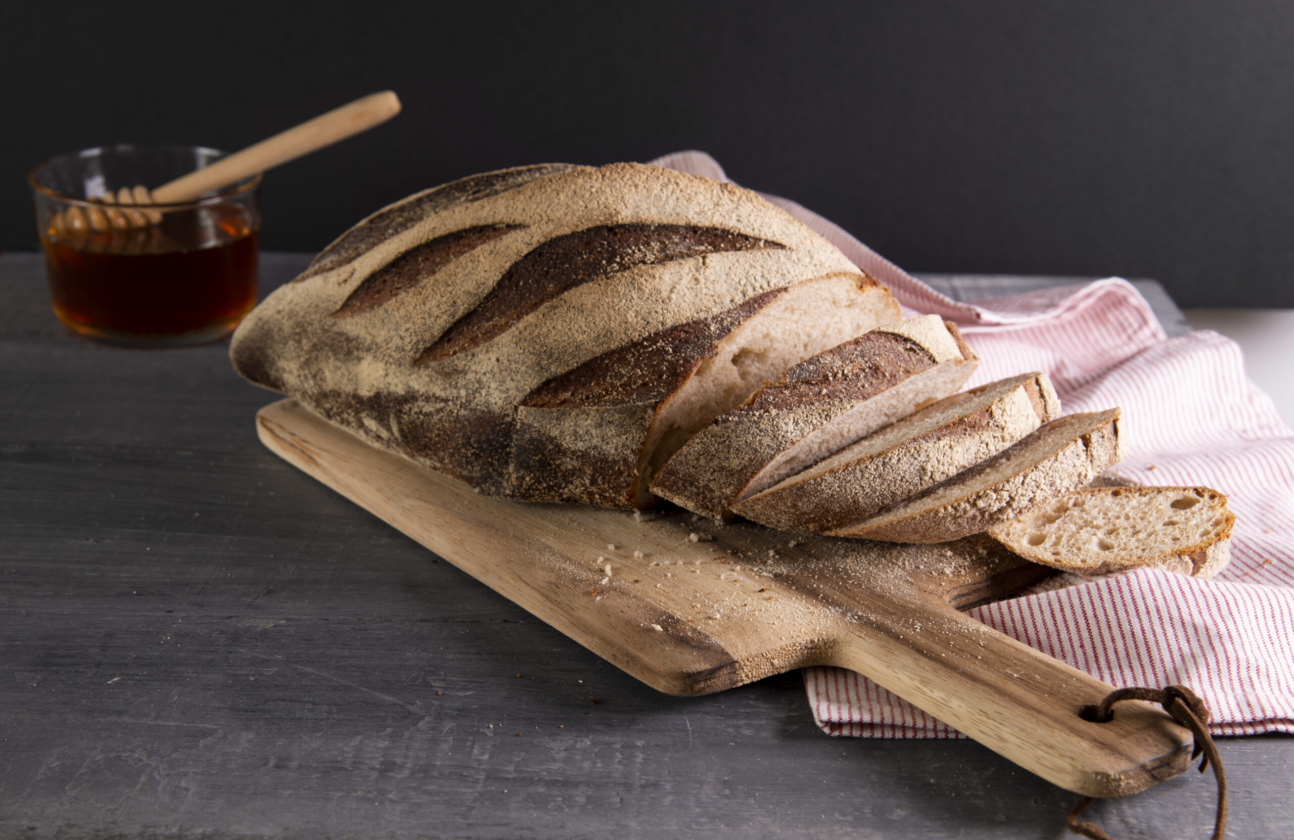 לחם קסטן כוסמין מלא – לחם ע"ב מחמצת שאור (מכיל קמח חיטה). מכיל קמח כוסמין מלא, בציפוי גרעינים.