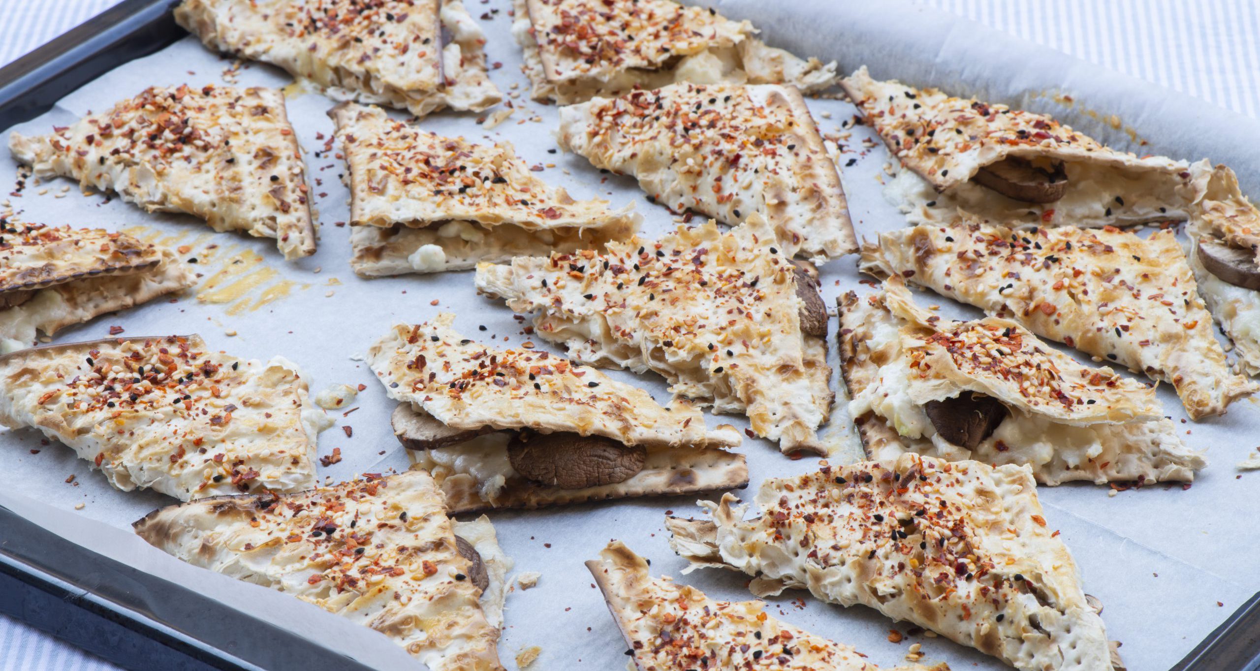 מרטיבים את המצות במים על מנת שיתרככו ומניחים אותן על תבנית אפייה.