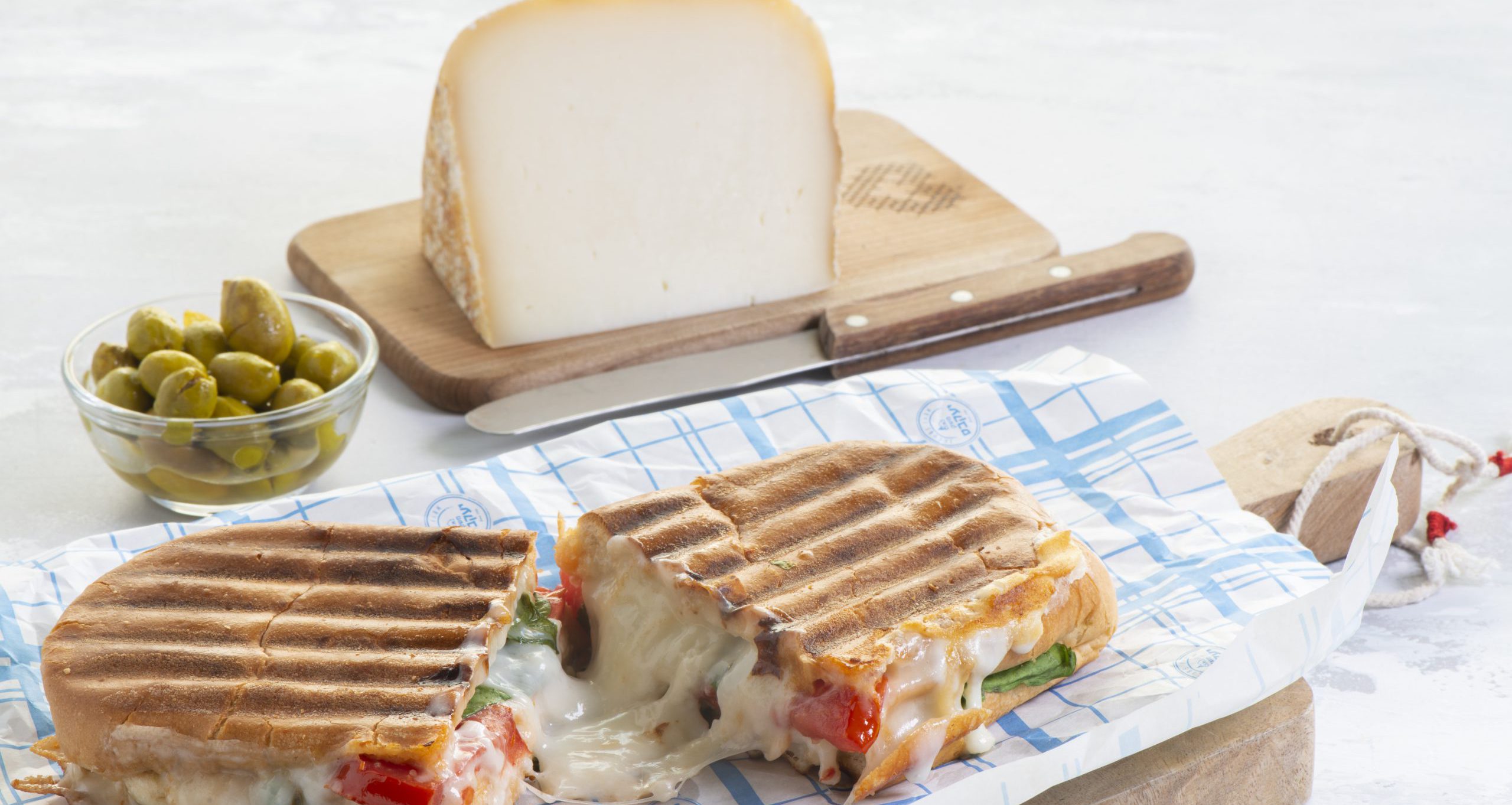 טוסט מלחמניית ג'אבטה עם גבינת קצ'וטה, עגבניות ועלי תרד