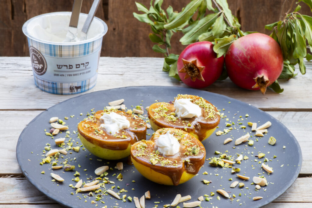 תפוחי גולדן דלישס עם קרם טופי, קרם פרש ופיסטוקים