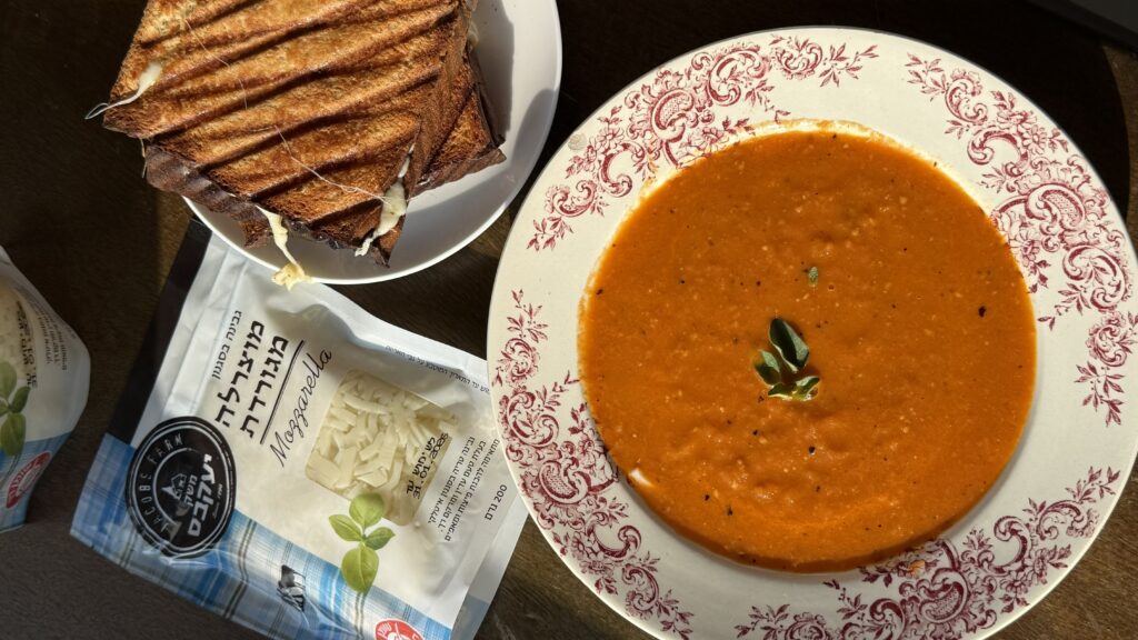 טוסט מוצרלה נמתח ומרק משגע מעגבניות צלויות ומוצרלה – מתכון של קרן אגם