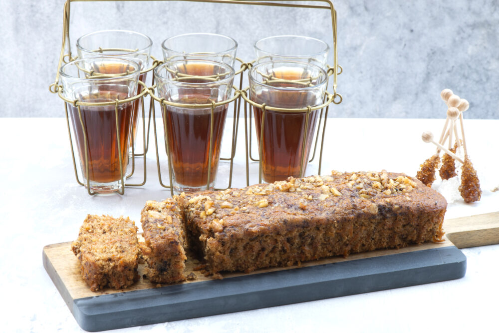 עוגת גזר ואגוזי מלך מלאה בניחוחות עמוקים של תבלינים חמים ומנחמים.