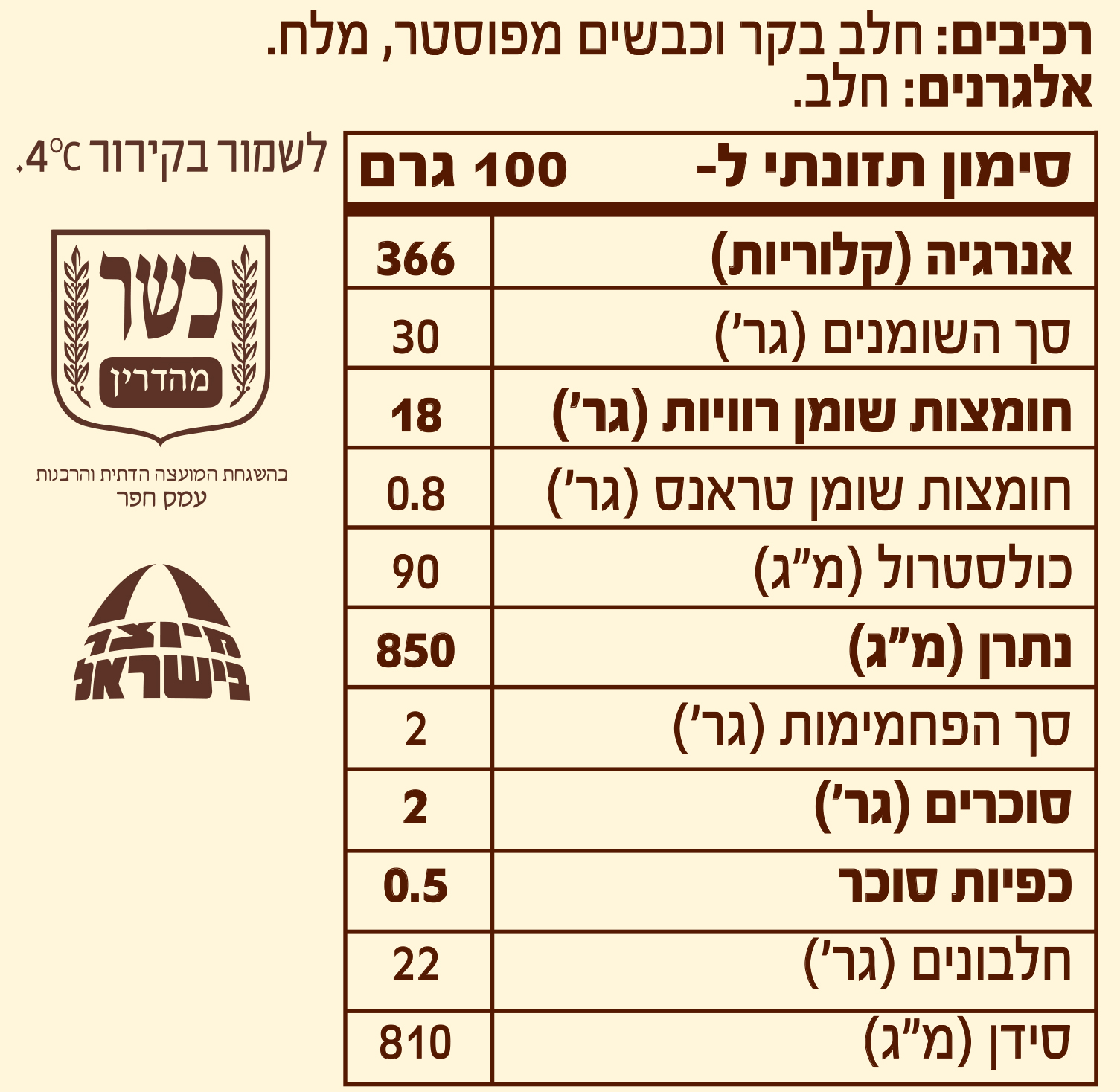 גבינה כחולה חצי קשה, משובצת עובש כחול. בעלת טעם עמוק וחריף המתחזק עם זמן הבשלתה. 30% שומן.